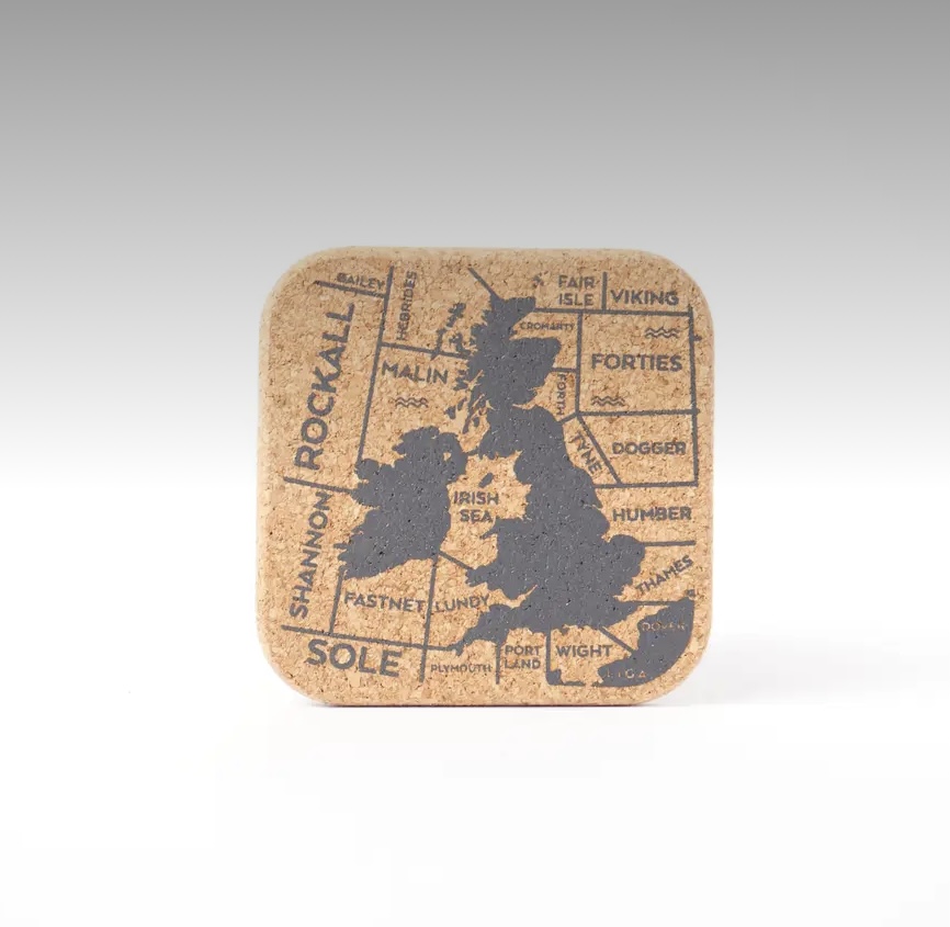 The Shipping Forecast has guided mariners since 1925 but also been relaxing listening to many people during its daily broadcast on BBC Radio Four. To commemorate this milestone, a range of placemats, coasters, and trays have been produced using natural cork. These coasters are sure to be a talking point with guests.