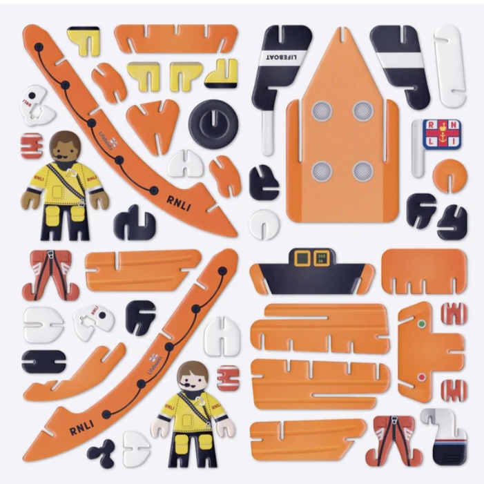 PlayPress is proud to present, our award-winning RNLI Inshore Lifeboat Playset. Build, play and create your own rescue missions with this 49 piece playset, which includes a boat and two crew members.