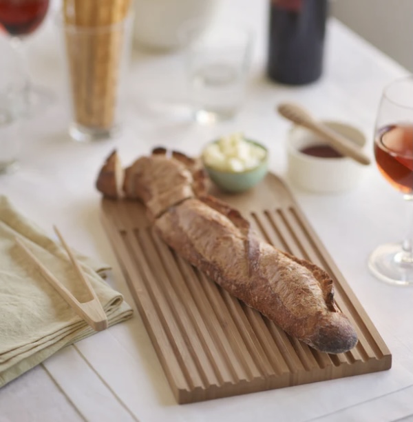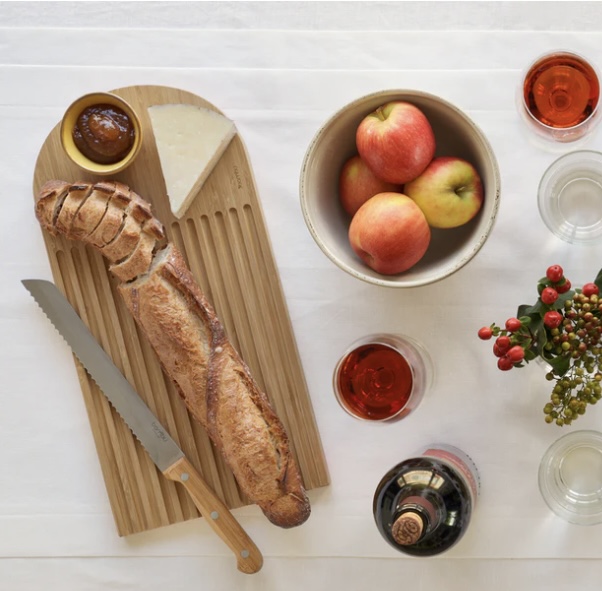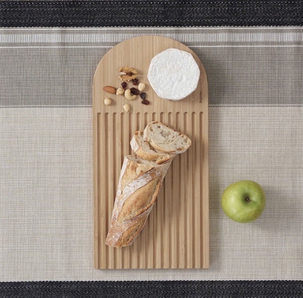 This attractive multifunctional board is carefully designed to catch crumbs with a surface area for cheese or other accompaniments. Reverse side can be used as a serving board.