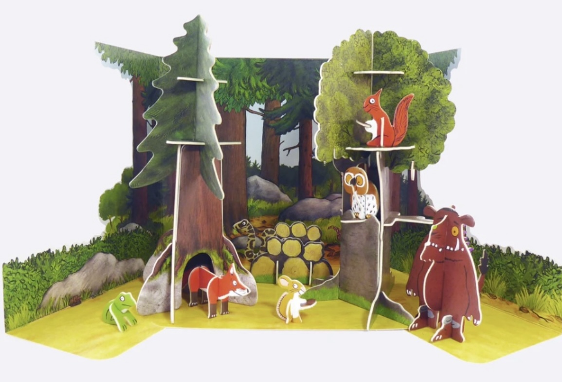 Press out and play to see the much-loved story of Julia Donaldson and Axel Scheffler’s ‘The Gruffalo’ come to life. This 44 piece pop-out playset is made from sturdy and sustainable Playboard which connect and slot together to create the pictured scene.
