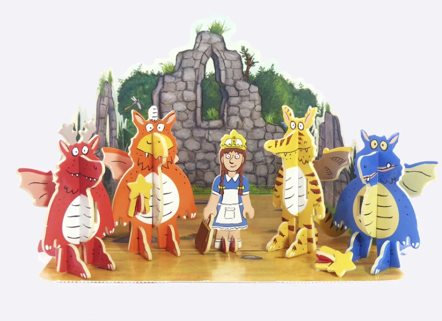 Press-out and play to see everyone’s favourite young dragon come to life. Build and play with Zog, his classmates and Princess Pearl. Contains 28 pop-out pieces made from sturdy and sustainable Playboard which connect and slot together to create the pictured scene.