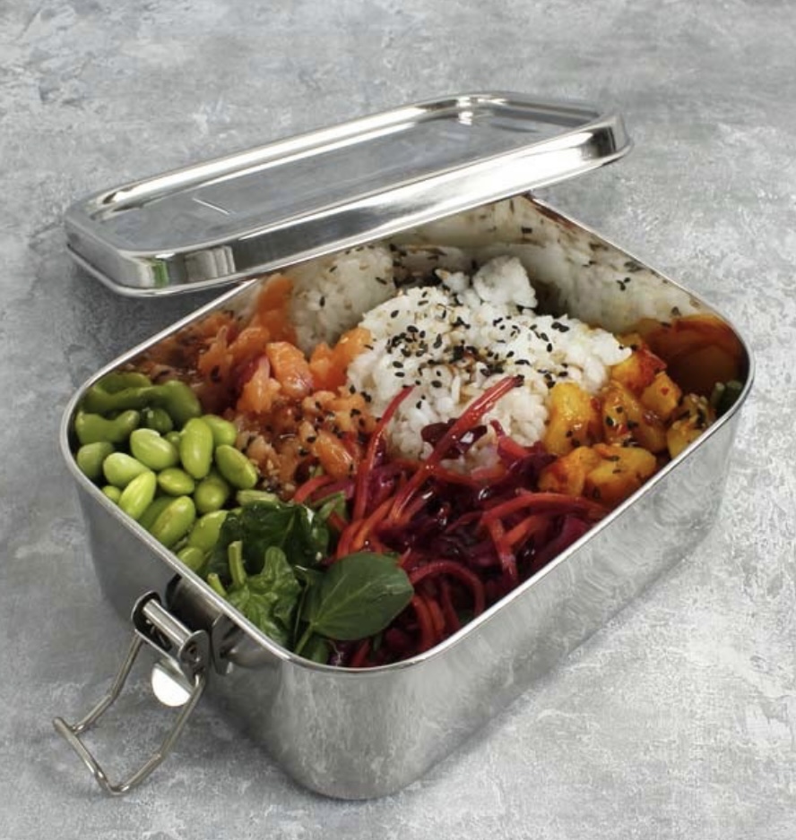 Taller than the Adoni, this rectangular stainless steel lunch box has a silicone seal around the inside of the lid for leak resistance. Spare seal included as standard.