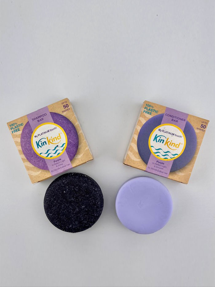 A purple Shampoo Bar or Conditioner Bar for blonde and silver hair giving up to 50 washes to reflect, light and shine.
