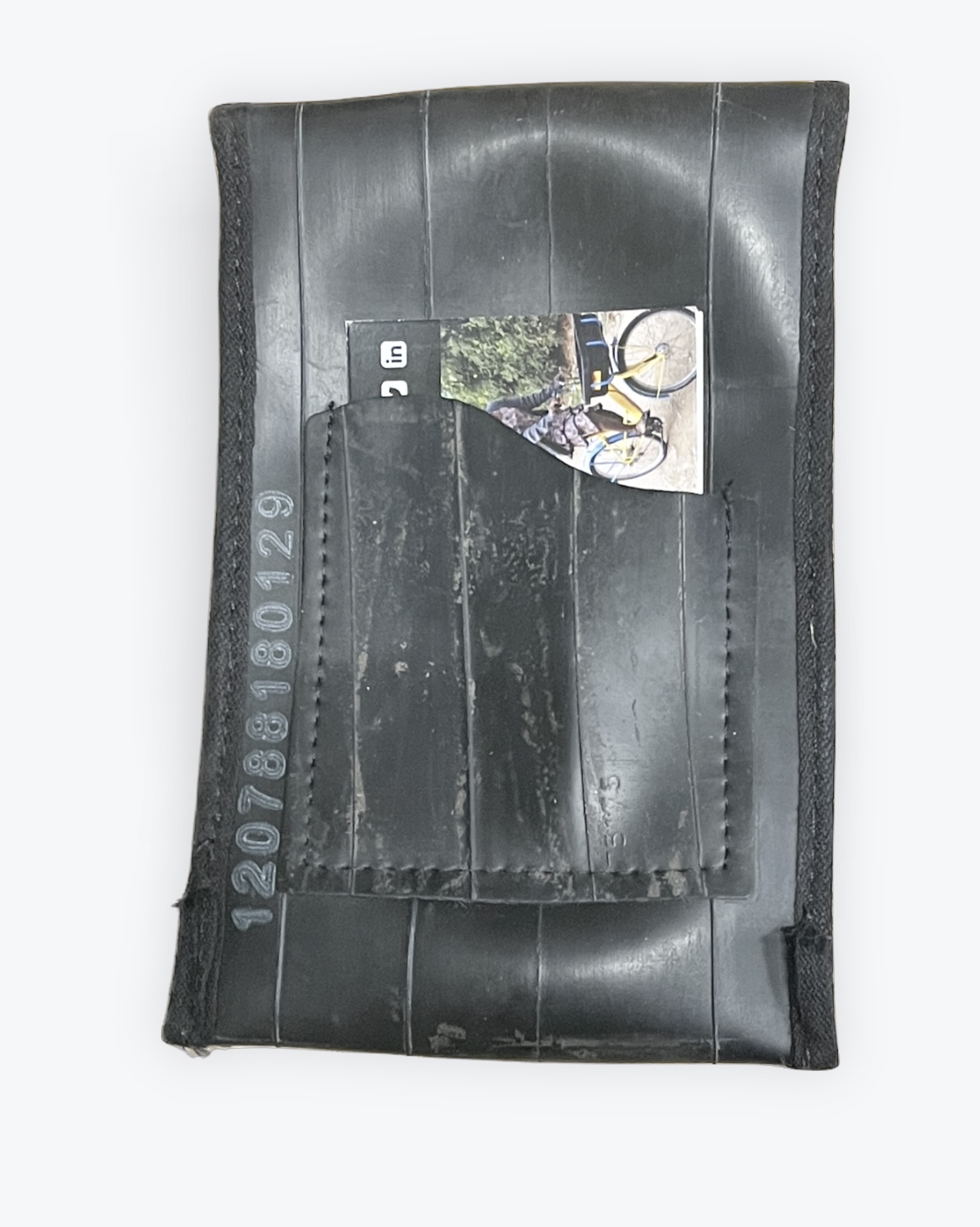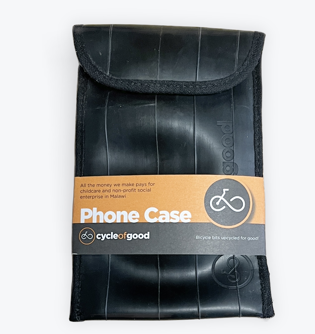 This phone case is perfect for protecting your mobile phone from the rain or being damaged when not in use. Made from recycled bicycle inner tubes with fabric lining and velcro fastening, it measures 100mm x 1500mm. Makes a perfect gift!