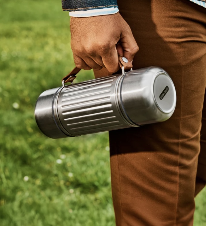 This stainless steel flask is as tough as it looks. With a 1 litre capacity, it comes with two cups which fix securely to top and bottom of the flask. It will keep your drinks hot or cold for up to 24 hours.