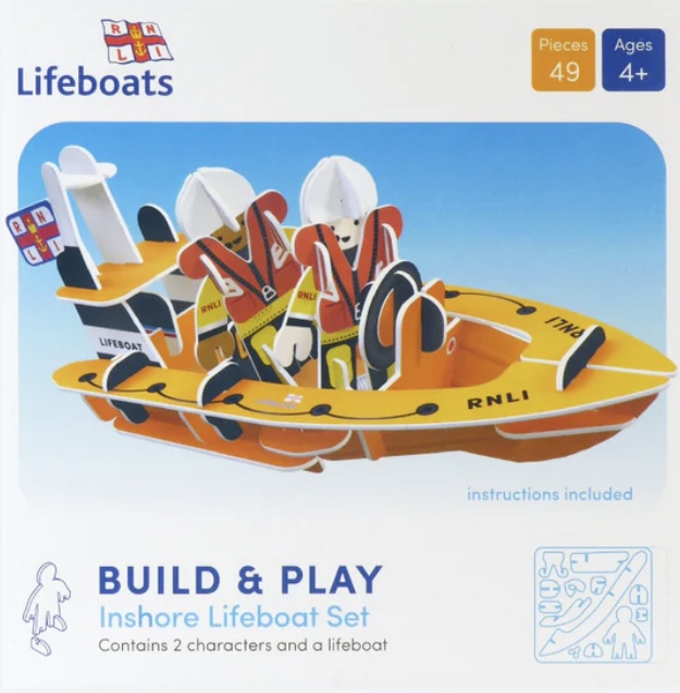 PlayPress is proud to present, our award-winning RNLI Inshore Lifeboat Playset. Build, play and create your own rescue missions with this 49 piece playset, which includes a boat and two crew members.