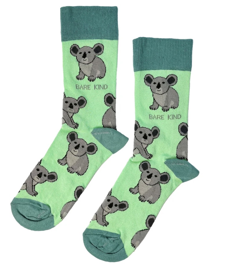 These comfortable bamboo socks with a koala bear design use non-toxic dyes.