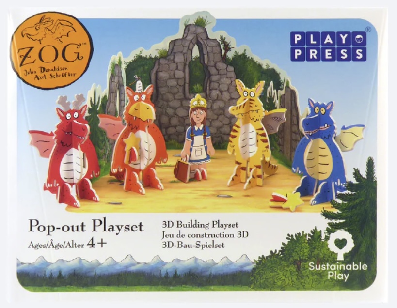 Press-out and play to see everyone’s favourite young dragon come to life. Build and play with Zog, his classmates and Princess Pearl. Contains 28 pop-out pieces made from sturdy and sustainable Playboard which connect and slot together to create the pictured scene.