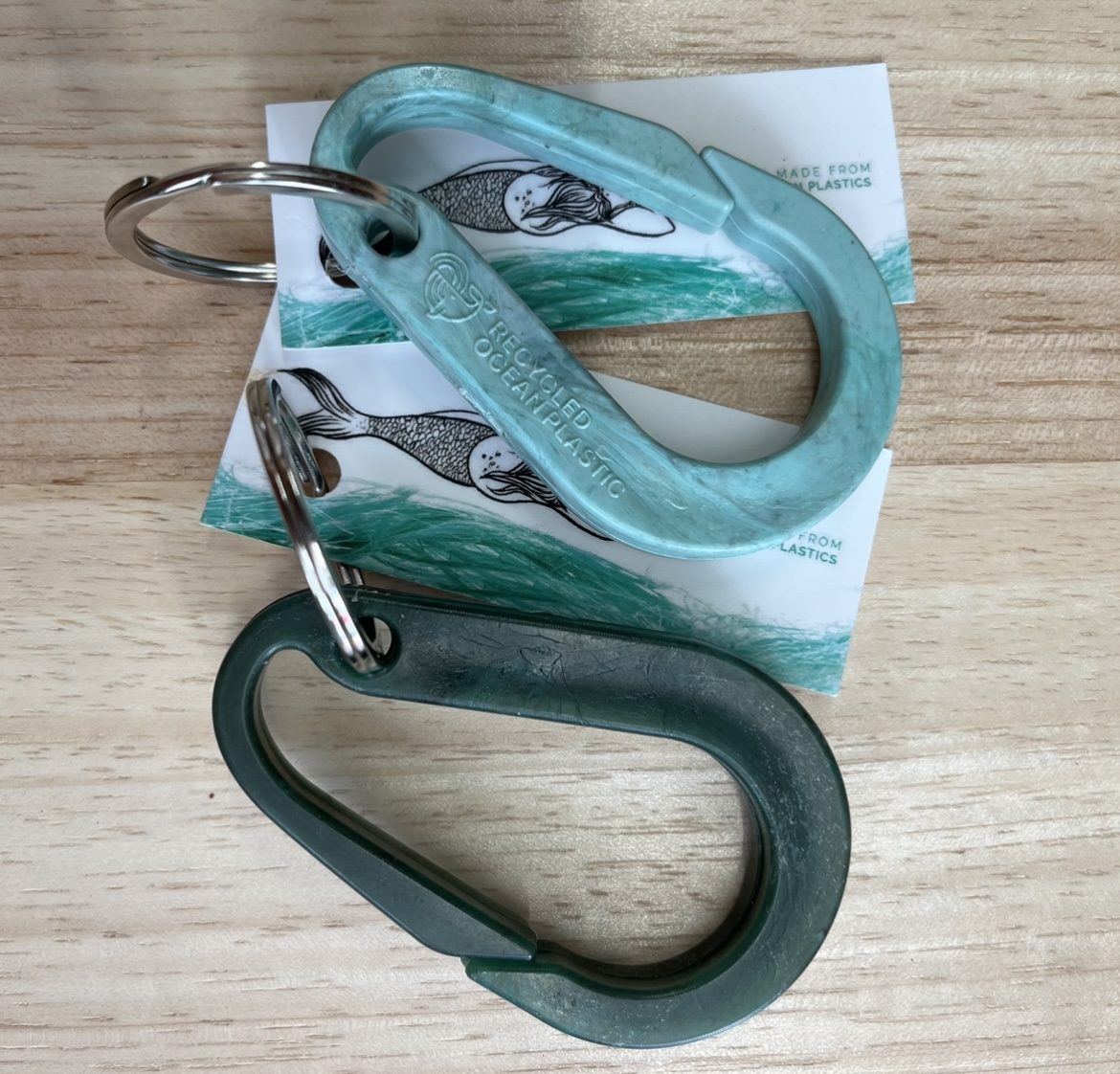 Made from recycled fishing nets and ocean plastics, these carabiners are perfect for your keys and drinks bottles. Made in one piece with a split ring, it is available in a choice of two colours.