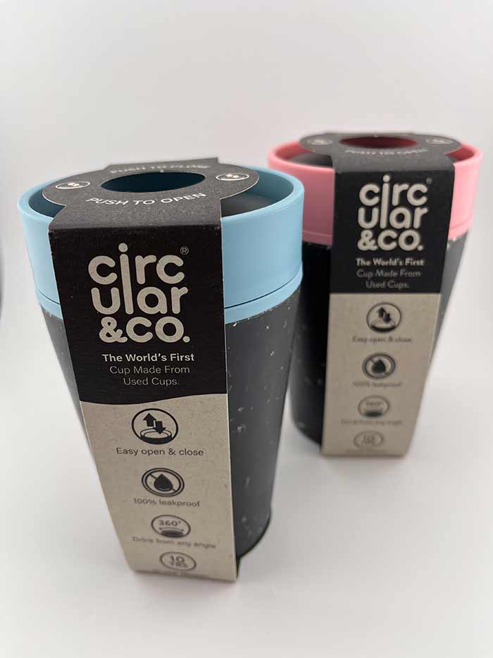 The World’s First Cup Made from Used Cups. Simply push lid to open/close to drink from any angle. It’s 100% leakproof and has a 10 year lifespan.
