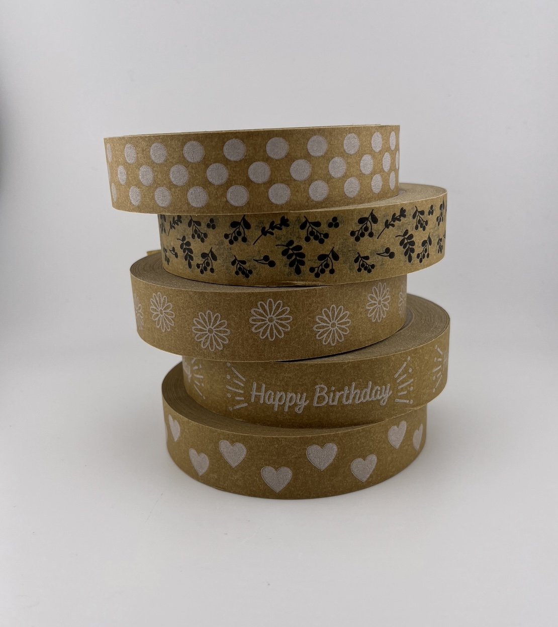 Tears from the roll, this FSC approved sources paper tape is printed with vegan ink and has a natural plant based adhesive.